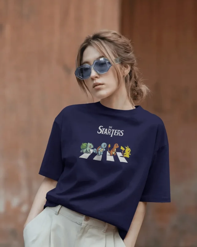 Women Oversized Fit Navy Blue Solid T-shirt
