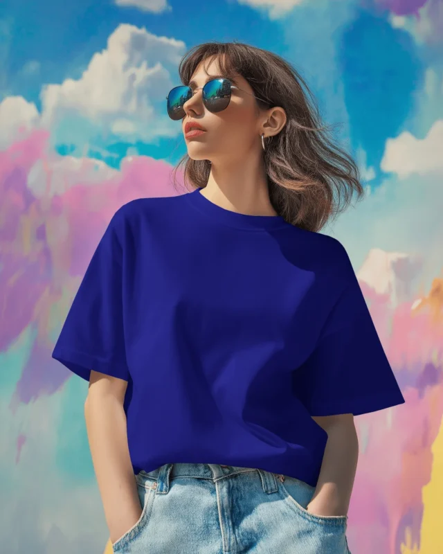 Women Oversized Fit Royal Blue Solid T-shirt