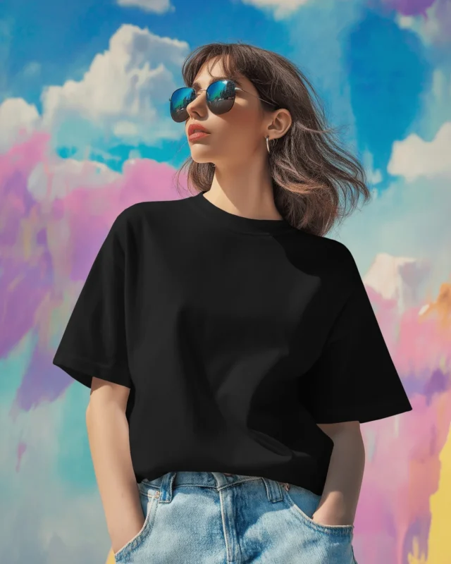Women Oversized Fit Black Solid T-shirt