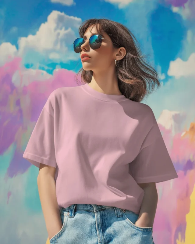 Women Oversized Fit Pink Solid T-shirt