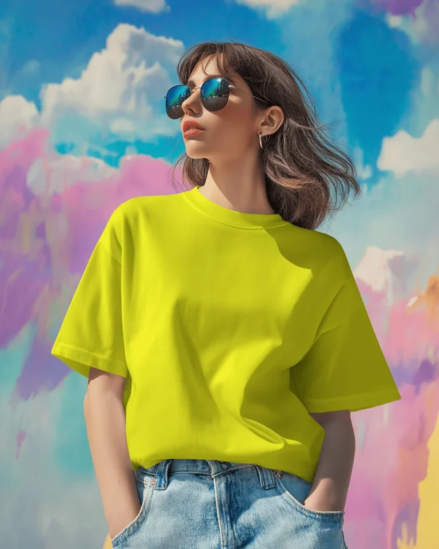 Women Oversized Fit Yellow Solid T-shirt