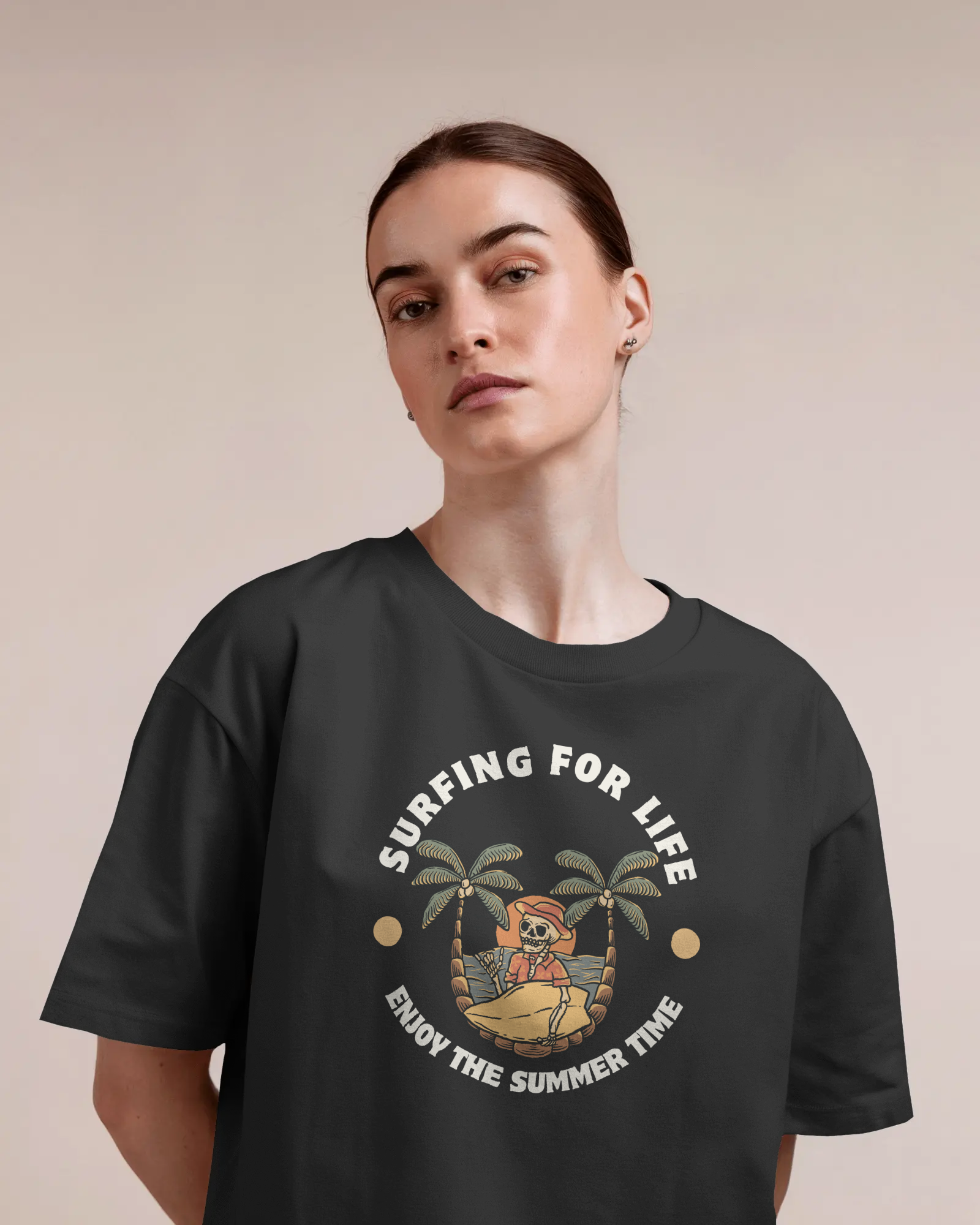 Surfing For Life Oversized Fit Puff Print T-shirt