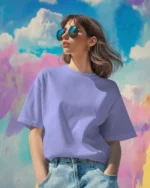 Women Oversized Fit Lavender Solid T-shirt